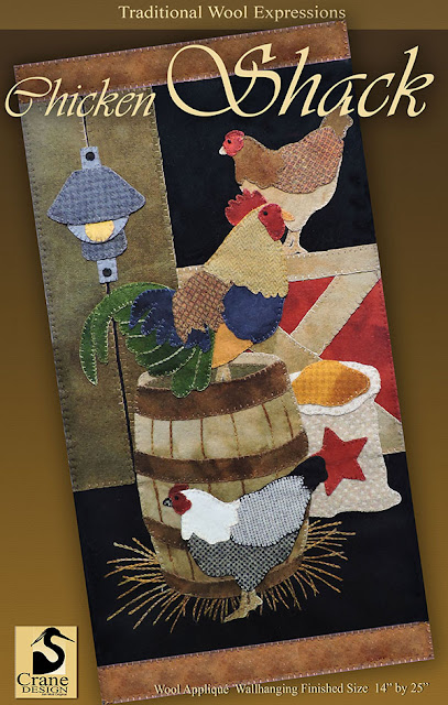Our latest wool applique pattern is just a fun and whimsical piece. Featuring a family of chickens off to market with farm fresh produce. It has a wonderful primitive feel with the textured combined with hand dyed wools Comes with easy to follow instructions and step by step illustrations.
